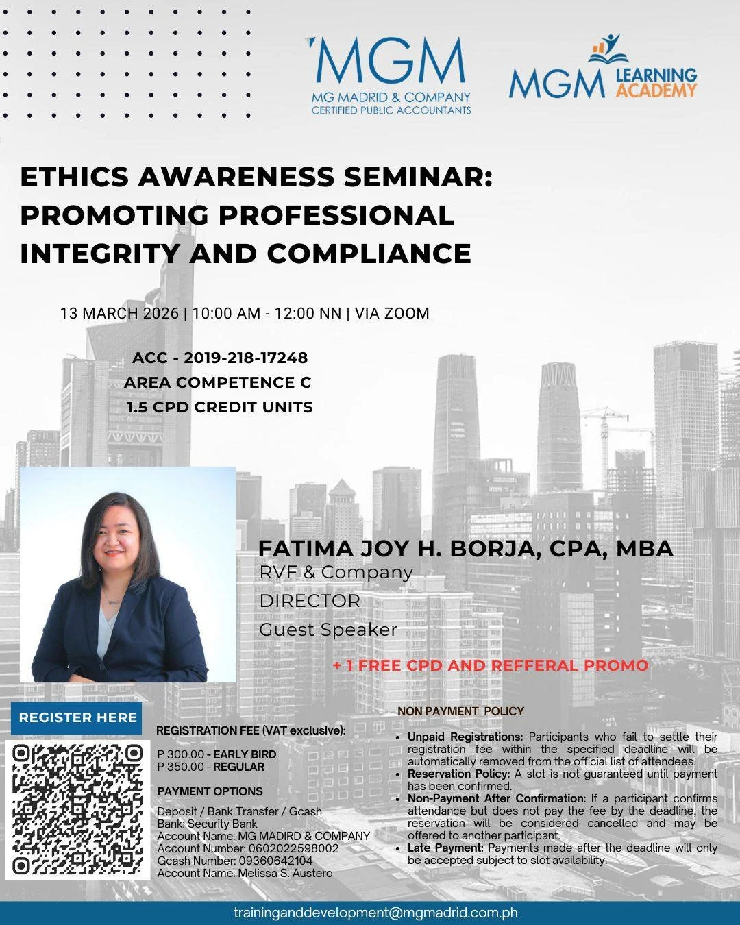 🎤 Fatima Joy H. Borja, CPA, MBA – Director, MG Madrid & Company